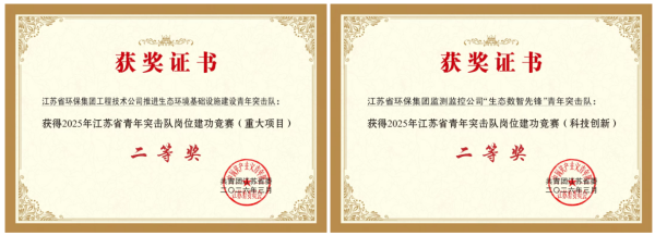 發(fā)布日期:2026-04-09 18:49 來源:集團(tuán)團(tuán)委、工程技術(shù)公司、監(jiān)測監(jiān)控公司 字體:[ 大 中 小 ]近日,由共青團(tuán)江蘇省委、省發(fā)改委、省科技廳主辦的2025年度江蘇省青年突擊隊(duì)崗位建功競賽表彰結(jié)果正式揭曉,省環(huán)保集團(tuán)工程技術(shù)公司推進(jìn)生態(tài)環(huán)境基礎(chǔ)設(shè)施建設(shè)青年突擊隊(duì)榮獲重大項(xiàng)目類二等獎(jiǎng),監(jiān)測監(jiān)控公司“生態(tài)數(shù)智先鋒”青年突擊隊(duì)榮獲科技創(chuàng)新類二等獎(jiǎng)。省環(huán)保集團(tuán)青年突擊隊(duì)以實(shí)干攻堅(jiān)詮釋環(huán)保擔(dān)當(dāng),以創(chuàng)新突破筑牢生態(tài)防線,充分發(fā)揮生力軍和突擊隊(duì)的示范引領(lǐng)作用,為美麗江蘇建設(shè)注入澎湃青春動能。