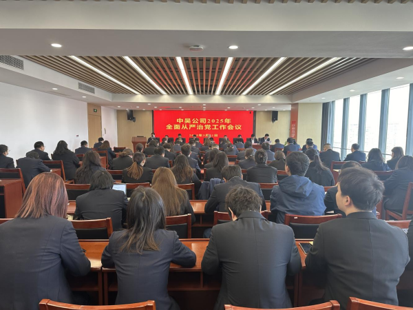 331日,中吳公司召開2025年度全面從嚴治黨工作會議,深入學習貫徹習近平總書記關于黨的自我革命的重要思想和黨的二十大、二十屆中央紀委四次全會精神,全面落實省委第十四屆八次全會、省紀委全會和集團黨委全面從嚴治黨工作部署,總結2024年成績,分析形勢任務,部署2025年重點工作,以高質量黨建引領公司高質量發展。公司黨委書記、董事長總經理王愷出席會議并講話