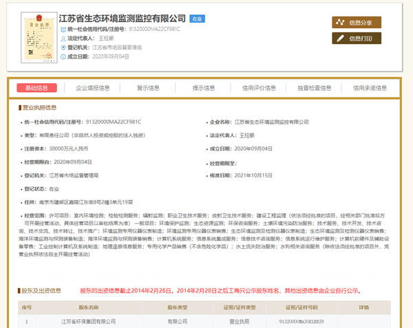 發(fā)布日期:2022-04-26 13:08 來(lái)源:江蘇省生態(tài)環(huán)境監(jiān)測(cè)監(jiān)控有限公司 字體:[ 大 中 小 ] 一、工商注冊(cè)登記等企業(yè)基本信息